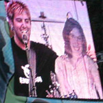 Ok, so I did it again. I out-somethinged myself. I have a knack for doing excactly those sort of things that people joke about but never would have done in real life. Lindsay was talking to her cousin and friend Natalie on the phone and they were talking about how Natalie would miss Cornerstone. Jokingly, Lindsay said that someone should make a cardboard cutout of her and take her out to Cornerstone. Tuesday of this week, I got a phone call from Lindsay when she was on her way into Bushnell. She told me the whole story - and of course, I left for Wal-Mart right after that. I stayed up that night until 3 a.m. putting the finishing touches on her. Through the whole week we've been taking random pictures of her in all sorts of situations – from worship on the beach to wearing a festival t-shirt to Sunday.... On Sunday, the plan all along was to let her crowd surf - no matter what this meant for her frail body. So up she went in the middle of the Jeremy Camp concert. She made her way back and forth, and spent a good five minutes making her way around. She made a couple appearances on the video screen, so I was just ecstatic. Then the song ended. Jeremy Camp just kinda looks at the crowd and said something along the lines of "What was that?" So Keith took her on toward the stage and she got passed up to the stage. He did a little dance with her and a litte Q&A with the crowd over what she was doing here. Here, just take a look at the video clip if you have Windows Media Player.